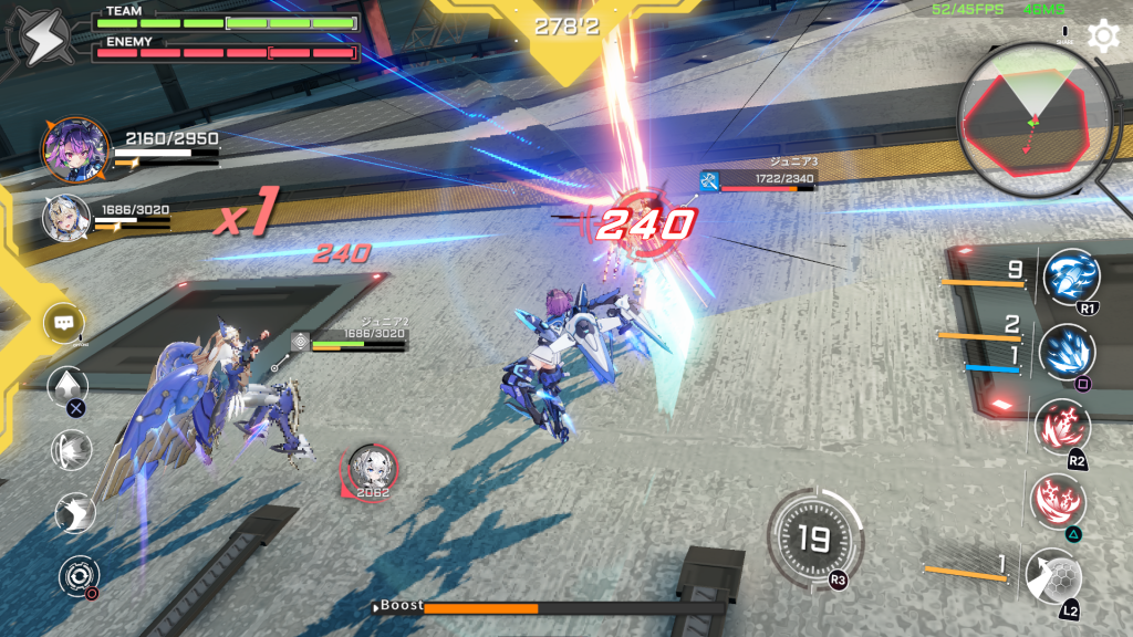 高速で移動しながら攻撃を避けるなど、操作に爽快感があります。